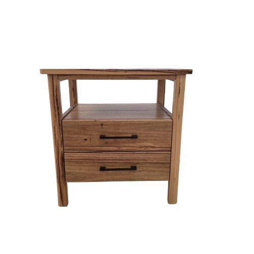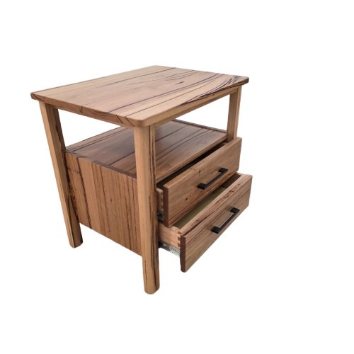 Modern, tall and elegant the Bronte bedside features an open gap for books and devices, with two dovetailed drawers. Available in custom sizes and timbers.