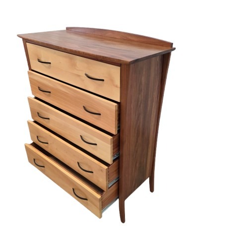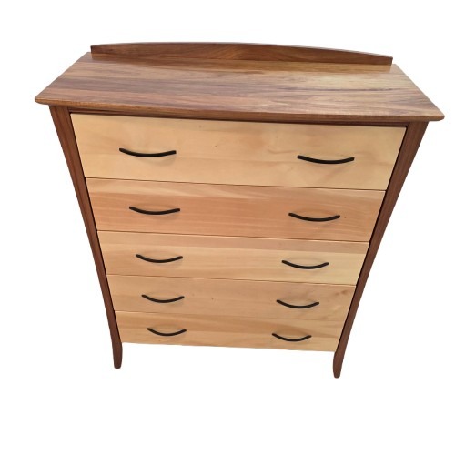 Fine curves and an iconic mix of Tasmanian timbers. Featuring solid timber with 5 dovetail drawers. Available in custom sizes and timbers.